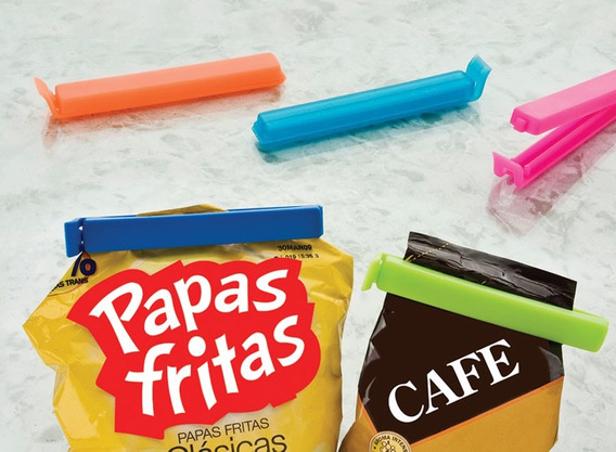Broche para cerrar bolsas de plástico en colores. Cada blíster contiene 4 unidades de 12 cm de largo.