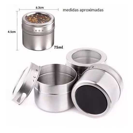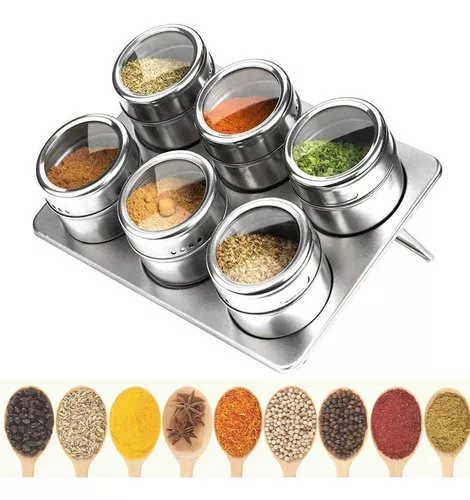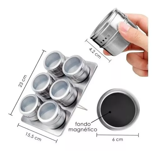 ESPECIEROS IMANTADOS LO QUE PERMITE ADHERIRSE A LA SUPERCIE LAS TAPAS DE LOS FRASCOS SON GIRATORIAS CON AGUJEROS ADECUADOS PARA DIFERENTES ESPECIES,.