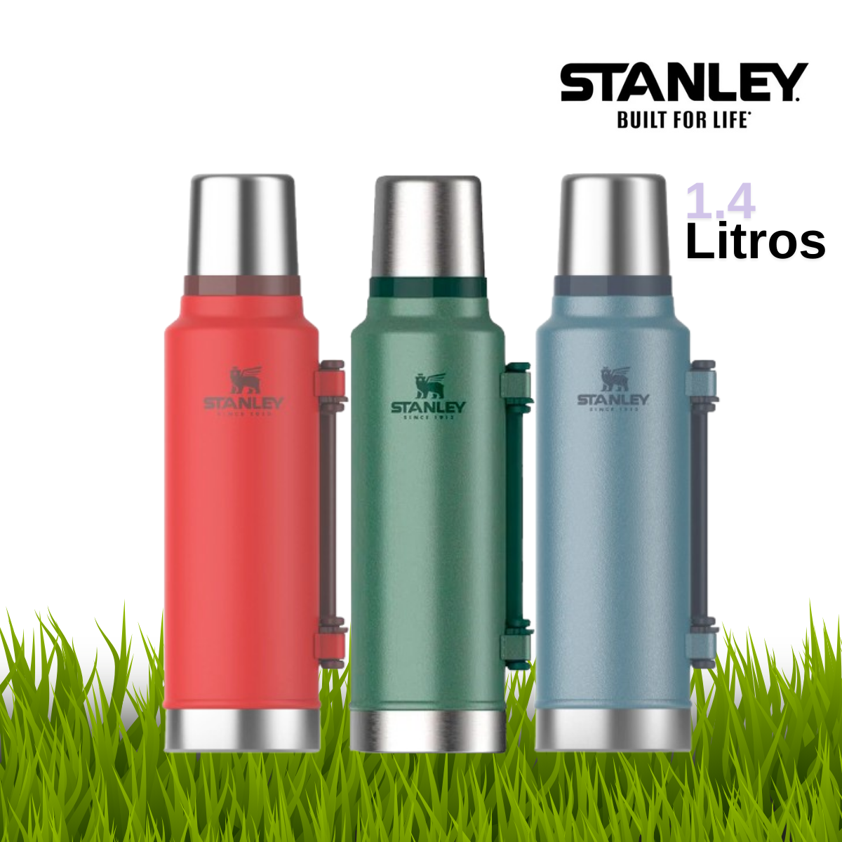 TERMO STANLEY DE EXCELENTE CALIDAD, DOBLE PARED CON TAPA TÉRMICA, TAPÓN CEBADOR Y MANIJA FLEXIBLE TAPA TÉRMICA.